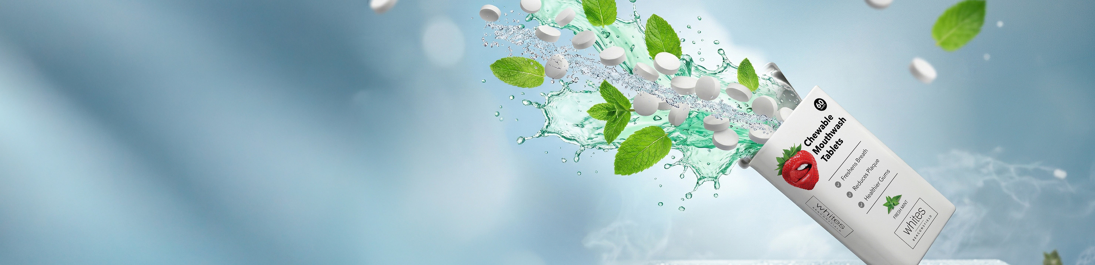 Our chewable mouthwash tablets fit in your pocket for fresh breath on-the-go. Ready in under 60 seconds, just chew, swish & spit.